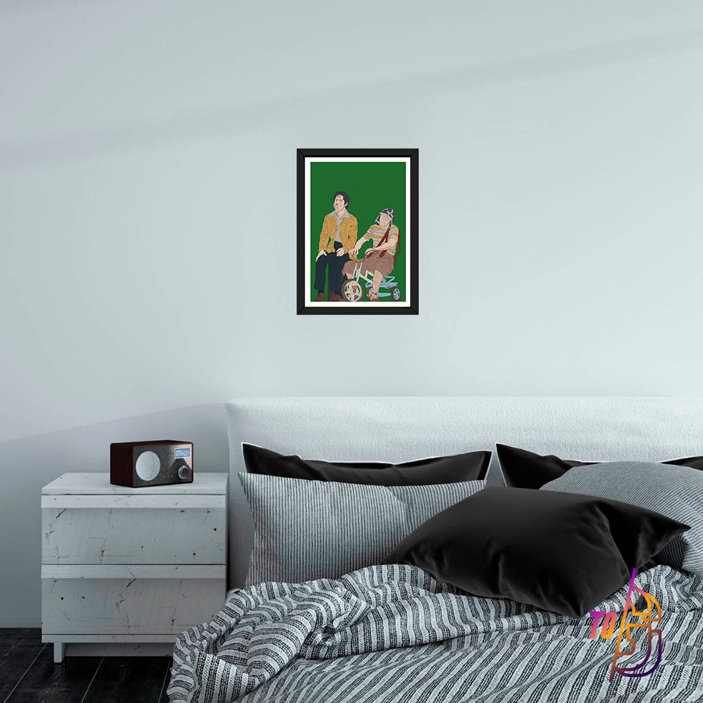 Todos os quadros acompanham molduras produzidas a partir de madeira maciça com pinturas laqueadas e fechamento com acetato 2mm, Incolor e de alta transparência. Os flex points permitem que a arte seja trocada na moldura e o pendurador móvel, permite que o quadro seja usado na vertical ou horizontal.