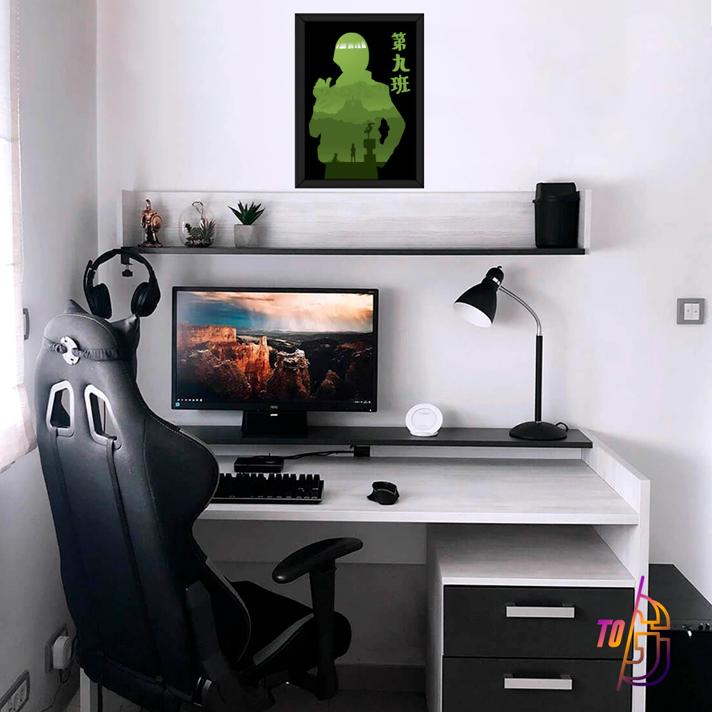 Todos os quadros acompanham molduras produzidas a partir de madeira maciça com pinturas laqueadas e fechamento com acetato 2mm, Incolor e de alta transparência. Os flex points permitem que a arte seja trocada na moldura e o pendurador móvel, permite que o quadro seja usado na vertical ou horizontal.